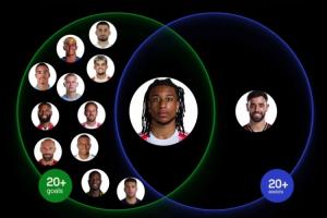 至少送上20记助攻的则仅有B费和奥利塞两人,奥利塞也是五大联赛本赛季目前为止唯一一位各项赛事为球队贡献双20+数据的球员。