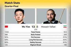 表现强势!吴宜泽13-8力克瓦菲晋级,得分、命中率等表现均占优