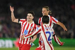 体育资讯4月30日讯 马竞在本轮欧冠主场迎战阿森纳,阿尔瓦雷斯点射扳平比分。