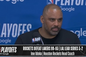 体育资讯4月30日讯 NBA季后赛首轮G5,火箭99-93湖人,大比分追成2-3。乌度卡赛后接受了媒体采访,以下为采访全文。